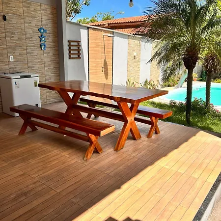 Zur Entspannung der Gäste bietet die 5-Zimmer- Casa Brisa Da Praia Em Paracuru eine Terrasse, ausgestattet mit einem Swimmingpool.